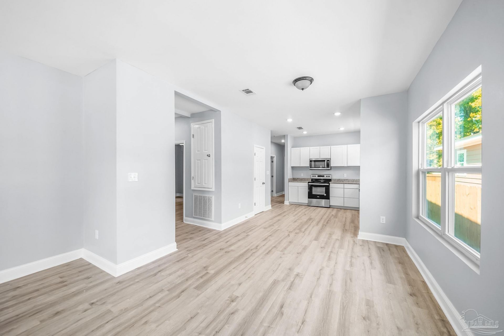 This beautiful home was just built and is ready for its first owners to move in!! The property is centrally located and convenient to everything Pensacola has to offer. Inside has 1,425 square feet of living space including three bedrooms and two bathrooms. The open floorplan living room, dining area, and kitchen are highlighted by durable LVP floors, high ceilings, and lots of windows. It creates an ideal space to entertain and host family gatherings, with great flow from each room. You'll be thrilled to cook dinner in such a modern kitchen while still being able to see your family or guests, and the granite counters and stainless steel Whirpool appliances will make it a breeze! A stunning primary suite and spacious laundry room can be found as you continue past the kitchen. The primary bedroom is split from the guest rooms offering extra privacy, and it features an amazing attached bathroom with a double vanity and walk-in closet. The guest bedroom wing is located nearer to the front of the house and has a bathroom at the end of the hall. Out back is a fully fenced and private backyard that can enjoyed from the large, covered patio. You won't want to miss this one!